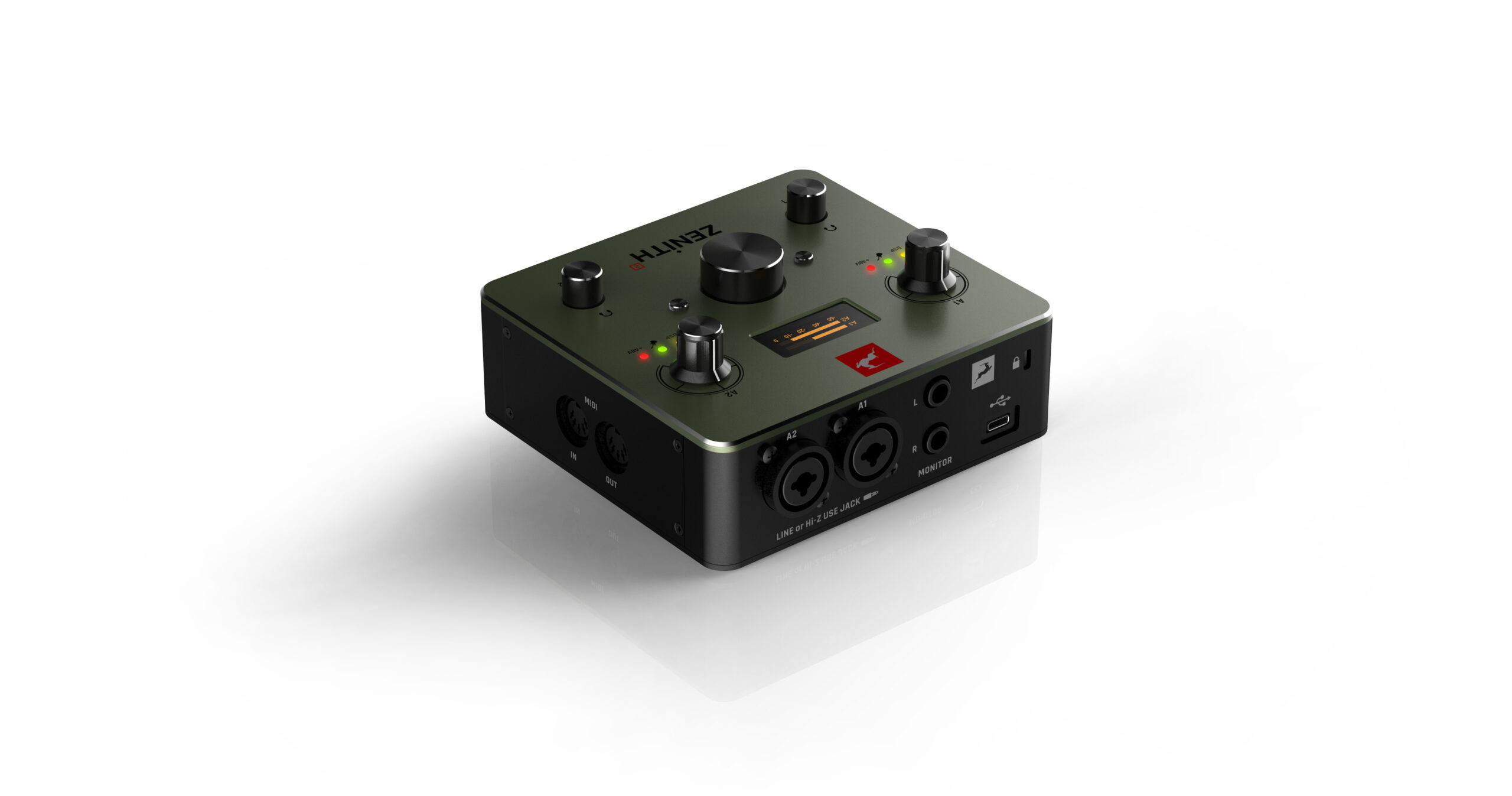 Phantom Power , Hi-Z Switch , MIDI I/O , Loopback